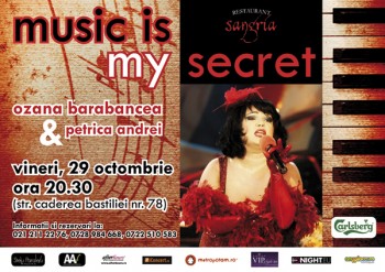 Vineri, 29 octombrie 2010, ora 20:30, Ozana Barabancea şi pianistul Petrica Andrei vor cânta la Restaurantul Sangria din Bucureşti.