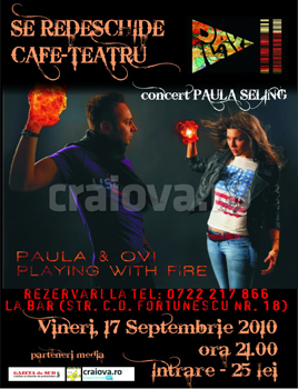 Vineri, 17 septembrie 2010, Paula Seling & Ovi vor concerta la redeschiderea Cafe-teatru Play din Craiova.