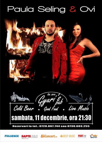 Sâmbătă, 11 decembrie 2010, ora 21:30, Paula Seling şi Ovi vor concerta la Gyuri’s Pub din Bucureşti.