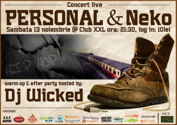 Sâmbătă, 13 noiembrie 2010, ora 21:30, Personal & Neko vor susţine un concert la Club XXL din Abrud.