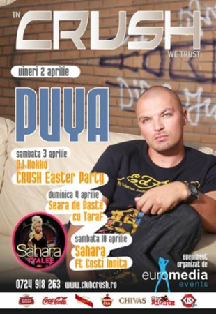 Vineri, 2 aprilie 2010, Puya va concerta în Club Crush din Constanţa.