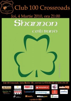 Joi, 4 martie 2010, ora 21:00, trupa Shannon va concerta în clubul 100 Crossroads din Bucureşti.
