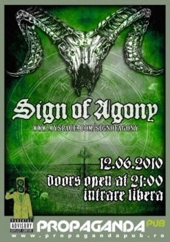 Sâmbătă, 12 iunie 2010, ora 21:00, trupa Sign of Agony va concerta la Propaganda Pub din Sibiu.