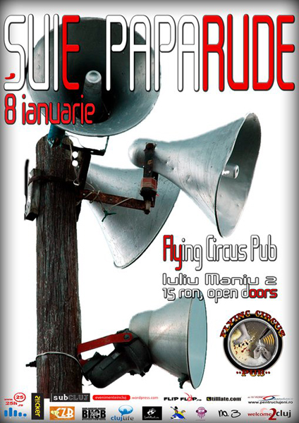 Sâmbătă, 8 ianurie 2011, Şuie Paparude vor concerta la Flying Circus Pub din Cluj-Napoca.