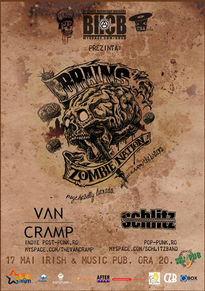Luni, 17 mai 2010, ora 20:00, trupa canadiană The Brains va concerta în Irish & Music Pub din Cluj-Napoca.