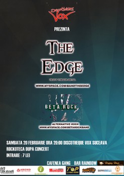 Sâmbătă, 20 februarie 2010, ora 20:00, trupa The Edge va concerta în Discotheque Vox din Suceava.