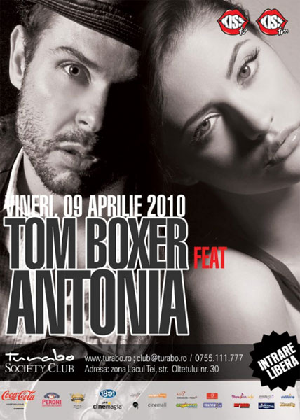 Vineri, 9 aprilie 2010, Tom Boxer feat. Antonia vor concerta în Turabo Society Club din Bucureşti.