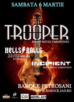 Sâmbătă, 6 martie 2010, Trooper va concerta la Barock din Petroşani.