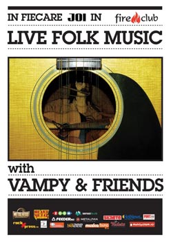 Joi, 7, 14, 21 si 28 ianuarie 2010, ora 21:00, Vampy & Friends ne invita la un concert live de folk in Fire Club din Bucuresti.