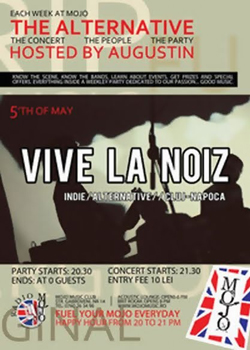 Miercuri, 5 mai 2010, ora 21:30, în Club Mojo-Brit Room din Bucureşti va concerta trupa Vive la Noiz.