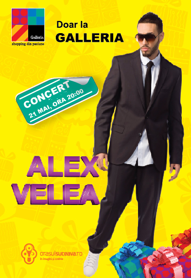 Vineri, 21 mai 2010, ora 20:00, Alex Velea va concerta la Galleria Mall din Suceava.