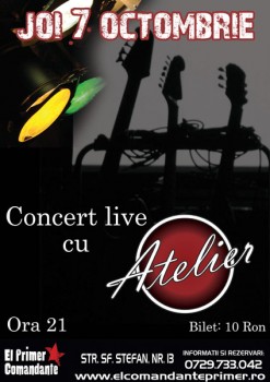 Joi, 7 octombrie 2010, ora 21:00, trupa Atelier va concerta în El Primer Comandante din Bucureşti.