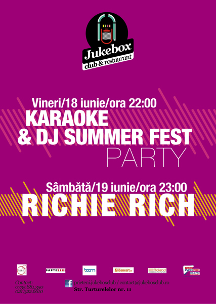 Vineri şi sîmbătă, 18 şi 19 iunie 2010, Club Jukebox din Bucureşti ne invită la o seară de karaoke şi DJ Summer Fest Party şi un concert al trupei Richie Rich.