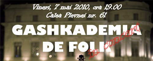 Casa de Cultură a Studenţilor din Bucureşti este vineri, 7 mai 2010, gazda unui eveniment special, concertul “Gashkademia de Folk“.