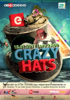 Sâmbătă, 15 ianuarie 2011, ora 23:00, la Club Elements din Bucureşti are loc petrecerea „Crazy Hats„.