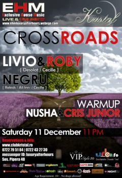 Sâmbătă, 11 decembrie 2010, ora 23:00, Kristal Glam Club din Bucureşti este gazda petrecerii „Crossroads„.
