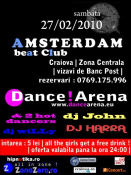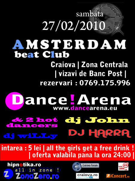 Sâmbătă, 27 februarie 2010, Amsterdam beat Club din Craiova ne invită la „Dance Arena„.