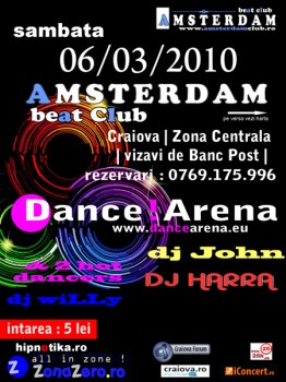 Sâmbătă, 6 martie 2010, Amsterdam beat Club din Craiova ne invită la „Dance Arena„.