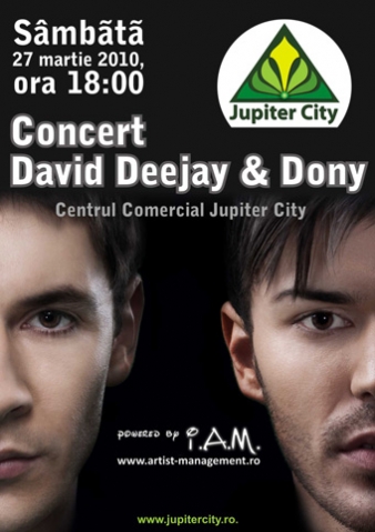 Sâmbătă, 27 martie 2010, ora 18:00, David Deejay & Dony vor concerta la centrul comercial Jupiter City din Piteşti.