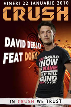 Vineri, 22 ianuarie 2010, David Deejay feat Dony vor mixa in Club Crush din Constanta.