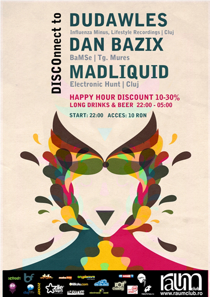 Vineri, 14 mai 2010, ora 22:00, în Club Raum din Cluj-Napoca are loc petrecerea „DISCOnnect to” cu Dudawles, Dan Bazix & Mad Liquid.