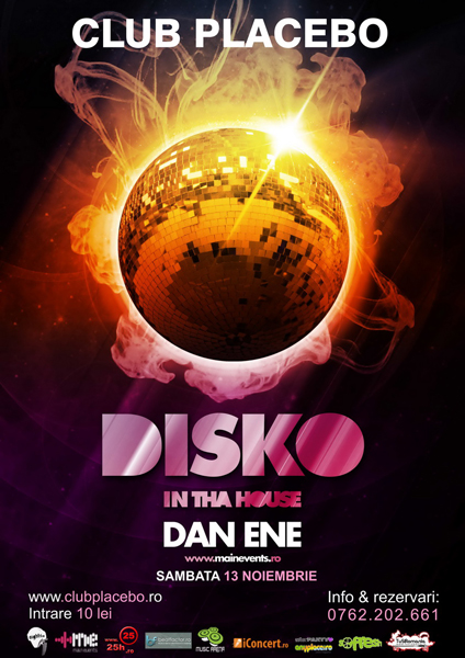 Sâmbătă, 13 noiembrie 2010, la Club Placebo din Adjud are loc petrecerea „Disko in tha house” cu Dan Ene.