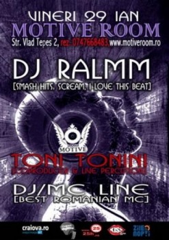 Vineri, 29 ianuarie 2010, Dj Ralmm va mixa in clubul Motive Room din Craiova.