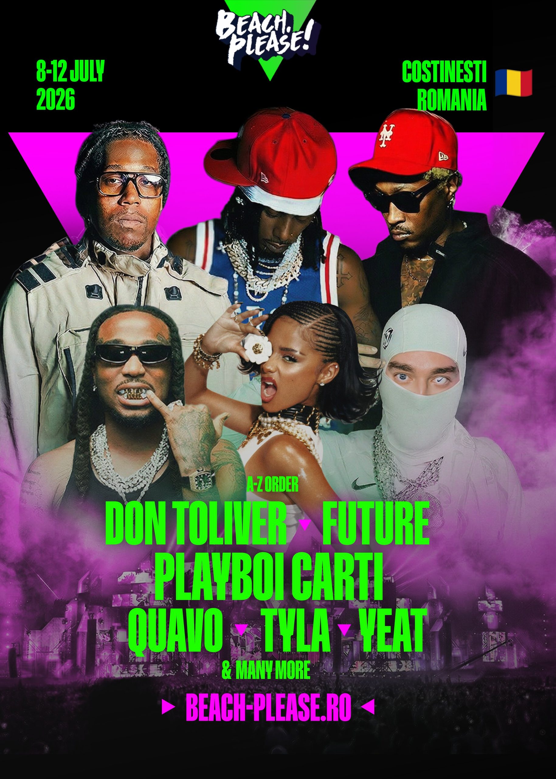 În perioada 8-12 iulie 2026, la Nibiru, are loc cea de-a cincea ediție a celui mai așteptat festival urban din România, Beach, Please! Playboi Carti, Future și Don Toliver vor fi în fruntea unui lineup de peste 200 de artiști.