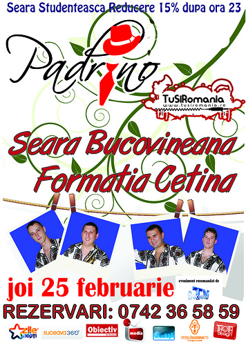 Joi, 25 februarie 2010, formaţia Cetina va concerta în Pub Padrino din Suceava.