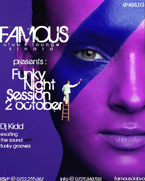 Sâmbătă, 2 octombrie 2010, la Famous Club & Lounge din Sinaia are loc petrecerea „Funky Night Session” cu DJ Kidd.