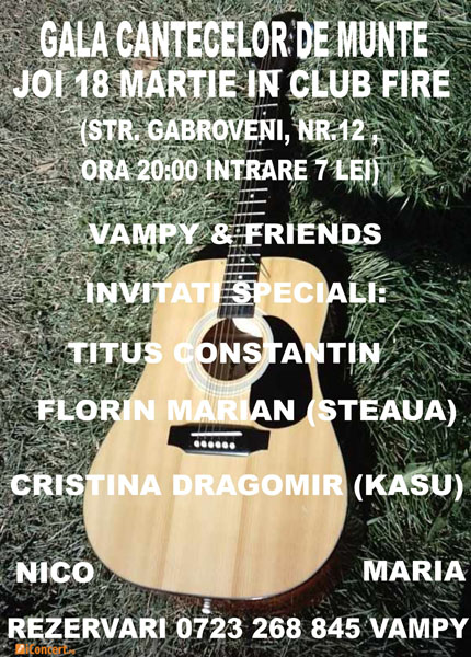 Joi, 18 martie 2010, ora 20:00, în Fire Club din Bucureşti are loc „Gala Cântecelor de Munte„.