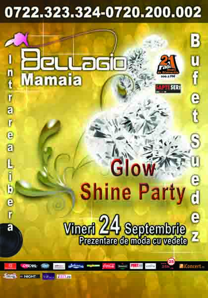 Vineri, 24 septembrie 2010, la Bellagio Club din Mamaia are loc petrecerea „Glow Shine Party”.