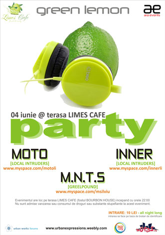 Vineri, 4 iunie 2010, la Limes Cafe din Iaşi are loc petrecerea „Green Lemon Party„.