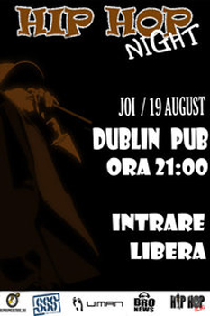 Joi, 19 august 2010, ora 21:00, la Dublin Pub din Iaşi are loc petrecerea „Hip-Hop Night„.