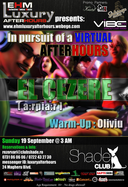 Duminică, 19 septembrie 2010, ora 3:00, în Club Shade din Bucureşti are loc petrecerea „In Pursuit of a Virtual Afterhours” cu El Cezere şi Oliviu la warm-up.