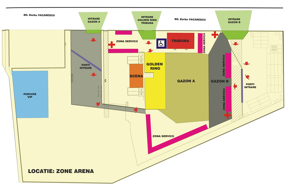 Zone Arena este situată pe str. Barbu Văcărescu nr. 164, în Cartierul Floreasca din Bucureşti.