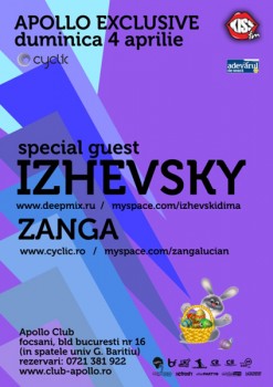 Duminică, 4 aprilie 2010, Izhevsky va mixa în Club Apollo din Focşani.
