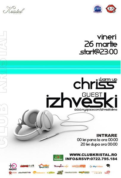 Vineri, 26 martie 2010, ora 23:00, Izhevsky va mixa în Kristal Glam Club din Bucureşti.