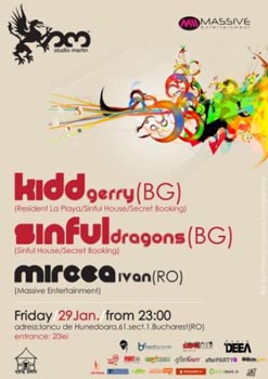 Vineri, 29 ianuarie 2010, ora 23:00, Kidd Gerry & Sinful Dragons vor mixa in Studio Martin din Bucuresti.