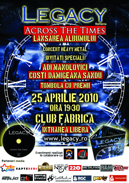 Duminică, 25 aprilie 2010, ora 19:30, trupa Legacy va lansa albumul „Across the Times” în Club Fabrica din Bucureşti.