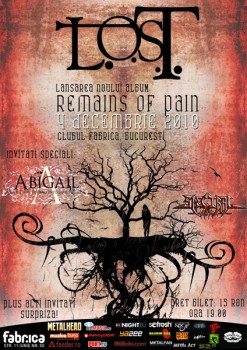 Sâmbătă, 4 decembrie 2010, ora 19:00, trupa L.O.S.T. va lansa albumul „Remains of Pain” în Club Fabrica din Bucureşti.