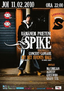 Joi, 11 februarie 2010, ora 22:00, Spike va lansa albumul „Rămânem Prieteni” la Jet Set Events Hall din Bucureşti.