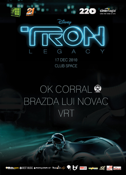 Invitaţii speciali, în cadrul petrecerii de lansare, OK Corral, VRT şi Brazda lui Novac vor recrea atmosfera din filmul Tron: Legacy, iar clubul Space va pune la dispoziţie o camera special amenajată Tron, unde fanii pot asculta şi cumpara CD-ul Tron: Legacy Original Motion Picture – Music by Daft Punk şi primi materiale promoţionale Tron.