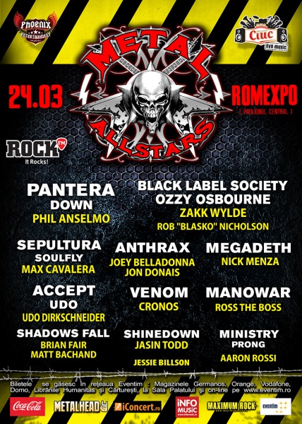 Phil Anselmo, Zakk Wylde, Joey Belladona, Max Cavalera, Cronos şi Ross the Boss sunt doar o parte din legendele rockului ce vor concerta în 2014 la Bucureşti. Pe 24 martie, componenţi ai unor trupe ca Pantera, Ozzy Osbourne, Anthrax sau Manowar vor susţine un show spectaculos timp de patru ore în Pavilionul Central al Romexpo.