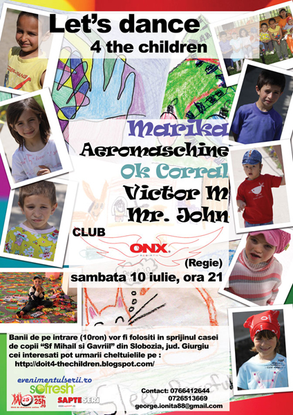 Sâmbătă, 10 iulie 2010, ora 21:00, în Club Onx din Bucureşti are loc petrecerea caritabilă „Let’s Dance for the Children„.