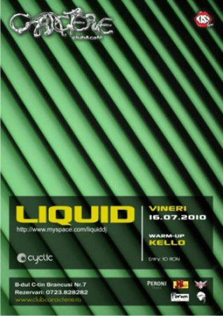 Vineri, 16 iulie 2010, Liquid este prezent la mixer în Club Caractere din Târgu Jiu.