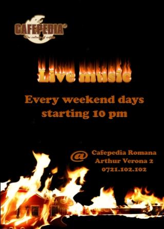 Vineri si sambata, 8, 9, 15, 16, 22, 23 29 si 30 ianuarie 2010, ora 22:00, cafeneaua Cafepedia din Bucuresti ne invita sa petrecem o seara in compania muzicii live.