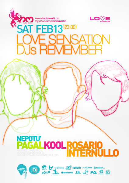 Sambata, 13 februarie 2010, ora 23:00, clubul Studio Martin din Bucuresti ne invita la petrecerea „Love Sensation DJs Remember„.