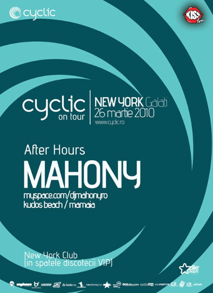 Vineri, 26 martie 2010, Mahony va mixa la afterhours party în Club New York din Galaţi la Cyclic on tour.