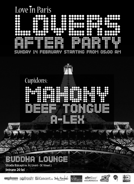 Duminică, 14 februarie 2010, ora 5:00, Mahony va mixa la afterhours party în The Buddha Lounge din Bucureşti.